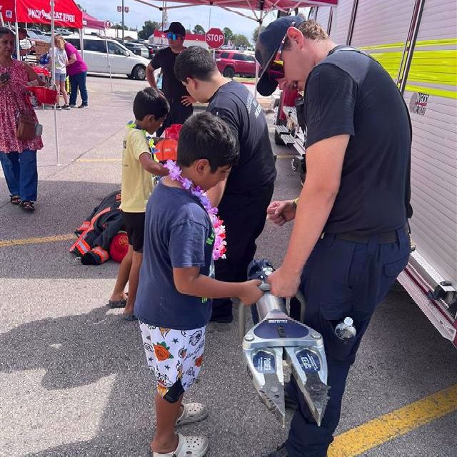 Bastrop/Travis County ESD 1 took part in the H-E-B Kids Day in Elgin earlier this month. Volunteers and paid personnel shared info about their tools and trucks. |