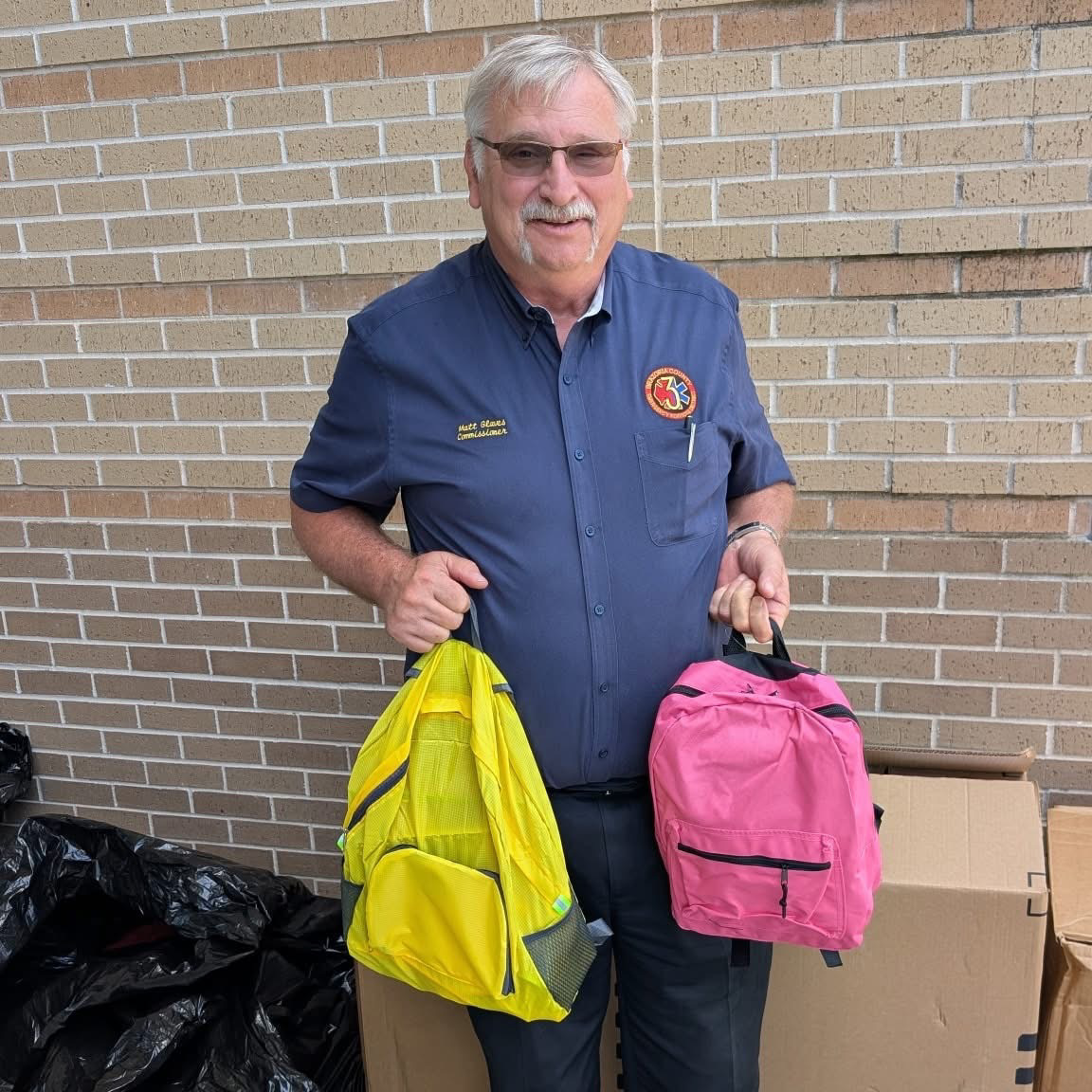 Members of Brazoria County ESD 3 helped with Operation Backpack with Alvin ISD. Commissioner Matt Glaves helped deliver the backpacks to students. |