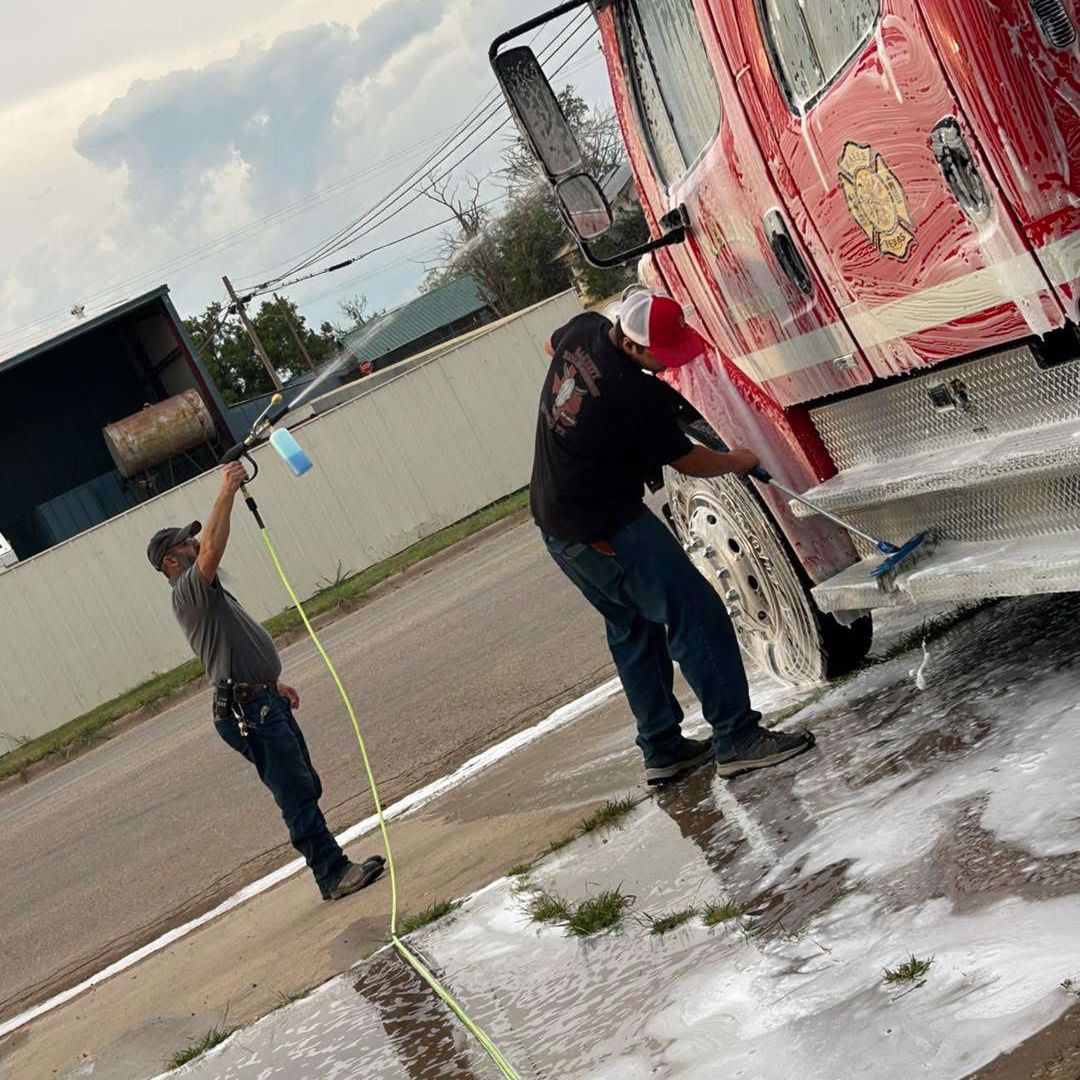 Members of Ralls VFD shined up every truck in the bay in anticipation of rodeo weekend. |