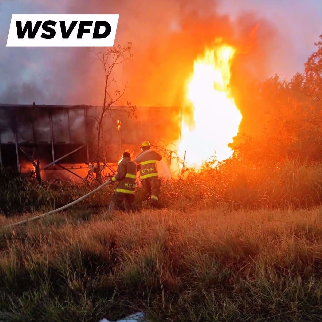 West Shore VFD members battling a truck fire on HWY 22. |
