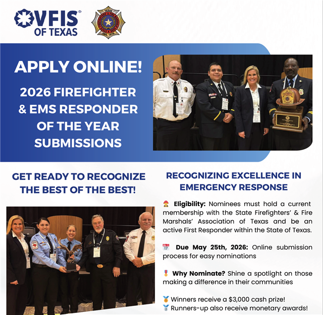It's almost time to recognize our Firefighter of the Year and EMS Responder of the Year at the state level! The submission website will open in January 2026.