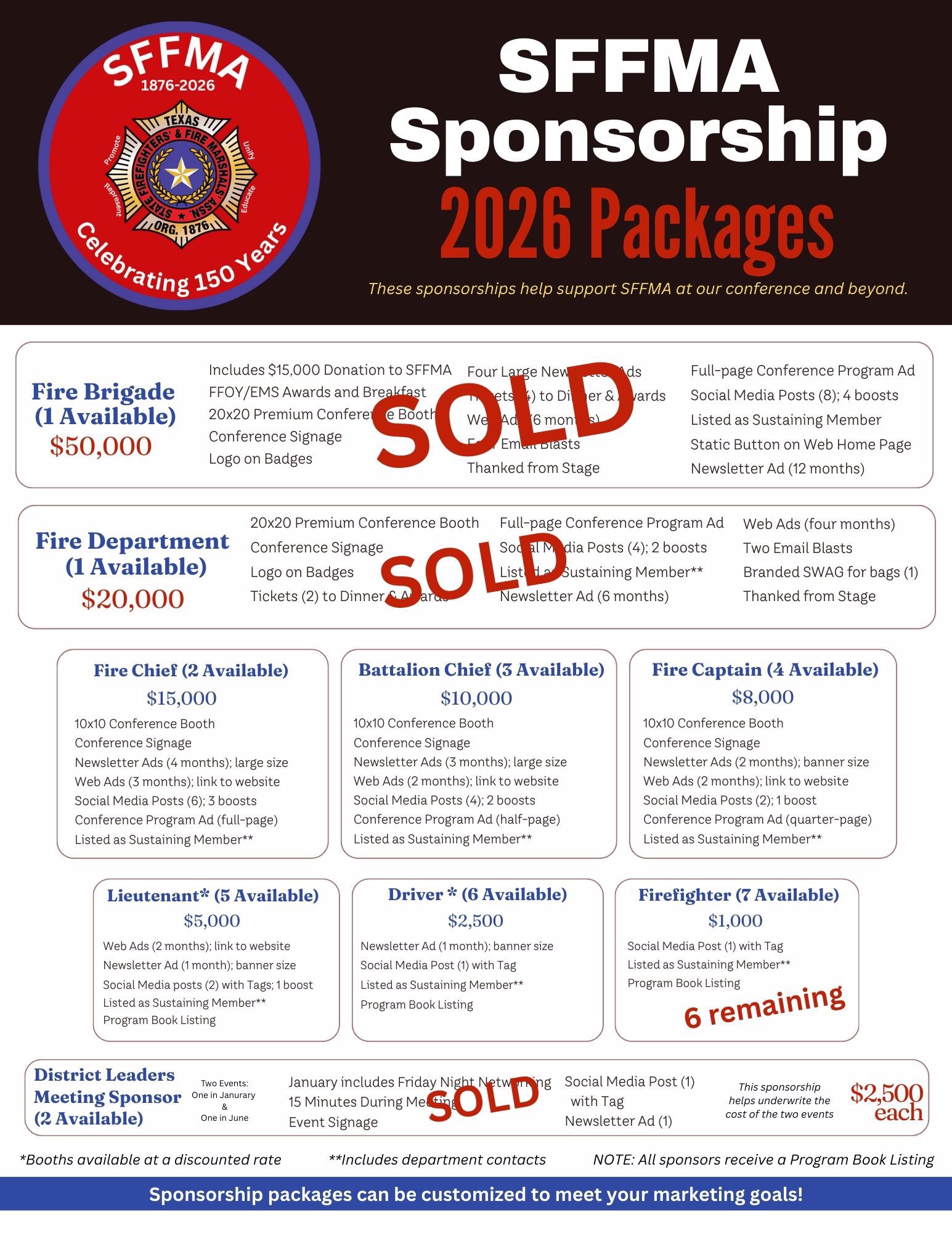 Thank you to our 2026 SFFMA sponsors so far!!