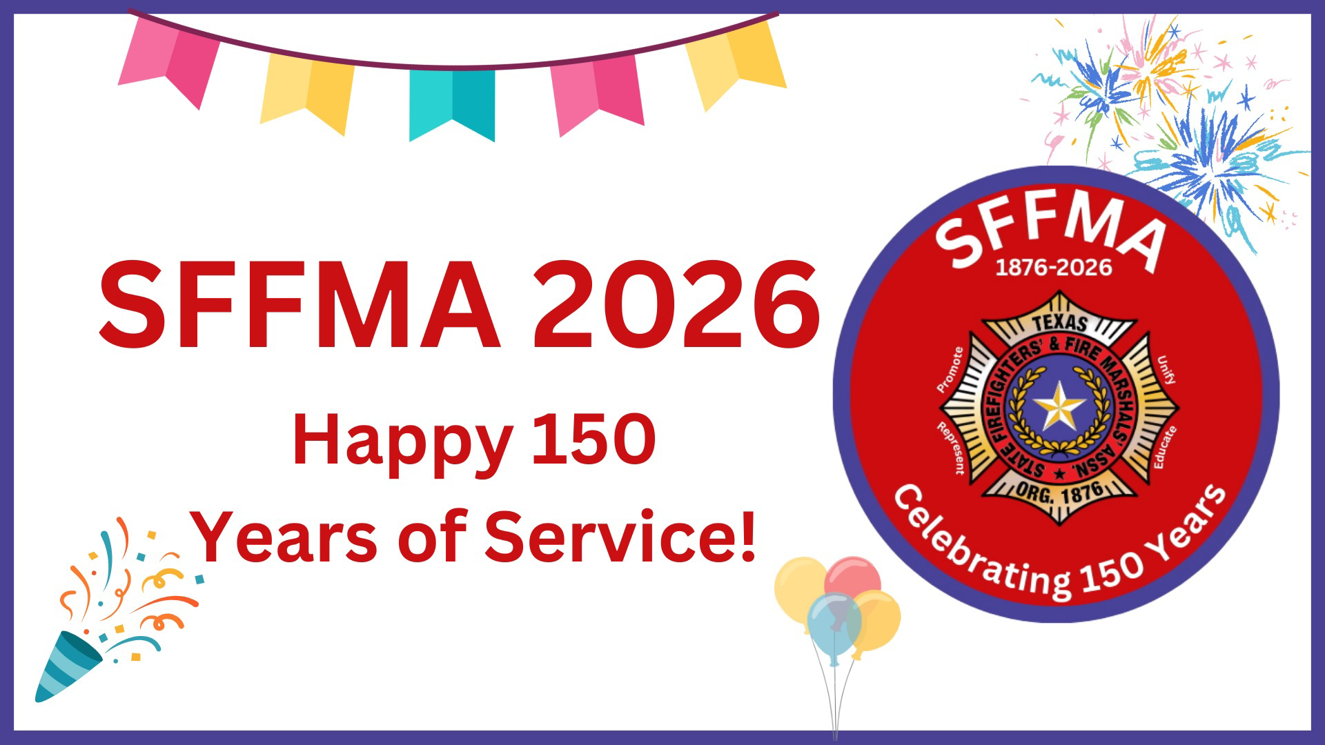 Happy 150th Anniversary to the State Firefighters' and Fire Marshals' Association of Texas! That's right, SFFMA has been helping Texas firefighters since 1876. Our mission is to promote, unify, represent and educate the fire and EMS services of Texas. Join us on this journey as we celebrate our traditions and work toward a better future.