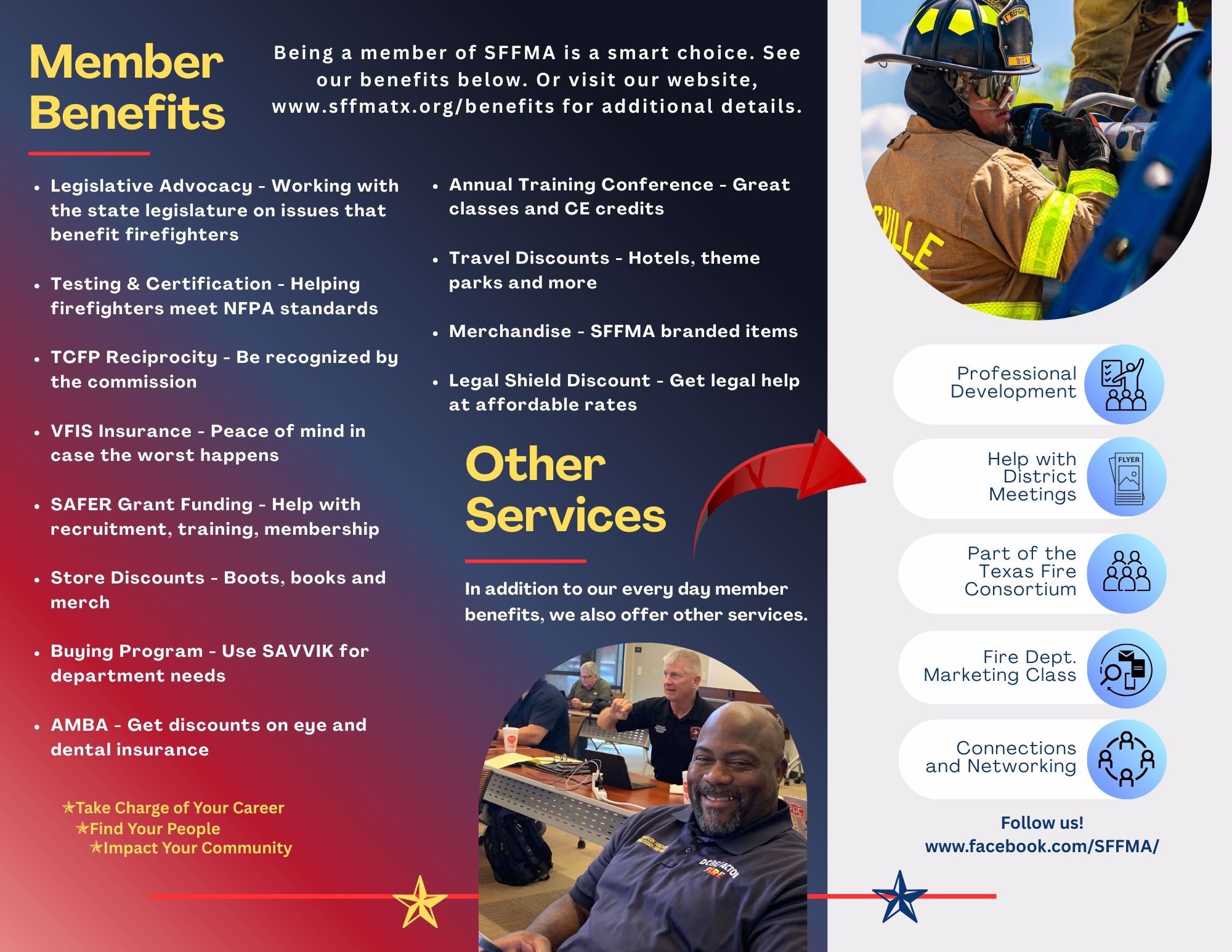 - Legislative Advocacy - Working with the state legislature on issues that benefit firefighters