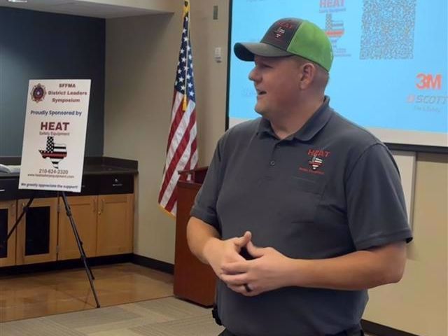 Greg Atkinson with Heat Safety Equipment sharing how the company helps fire departments find grant funding. |