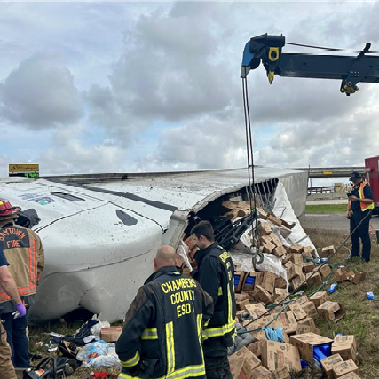 Baytown E5, E7, TR51 and B1 responded to a mutual aid call in Chambers County, for an 18-wheeler rollover with entrapment. |