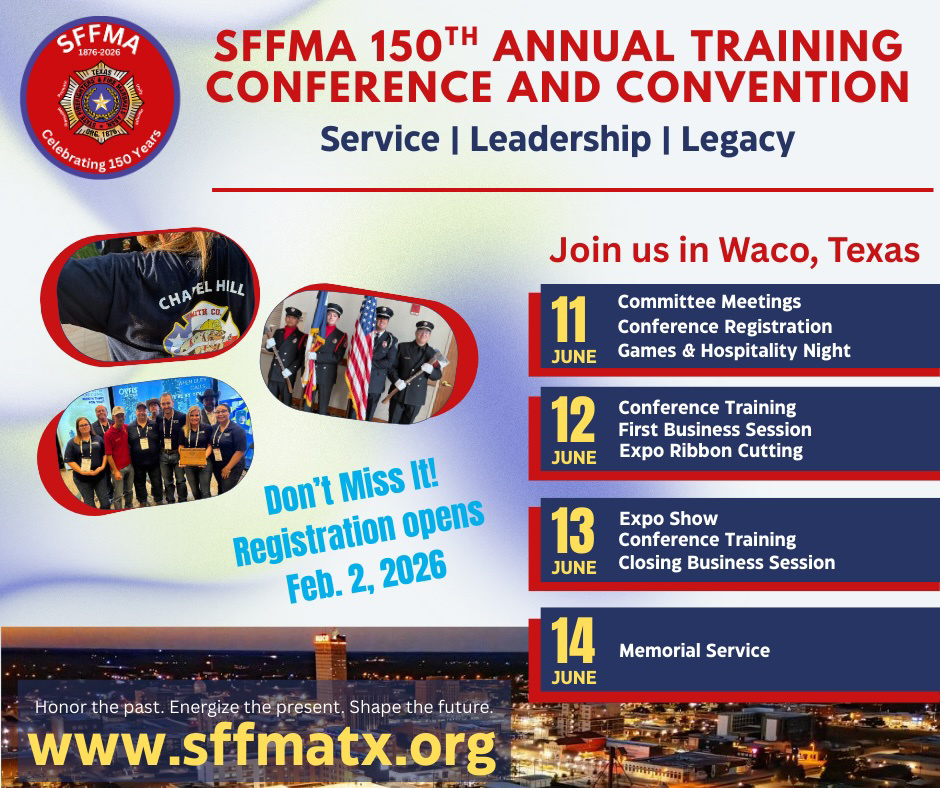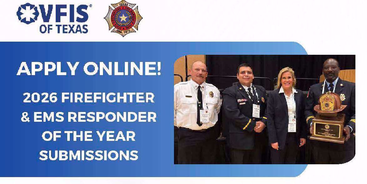 The Texas State Firefighters' and Fire Marshals' Association (SFFMA) is proud to recognize the dedication, service, and heroism of Firefighters and EMS Responders across the state. As part of its continued commitment to honoring these brave individuals, VFIS of Texas is honored to sponsor the 2026 Firefighter & EMS Responder of the Year Awards.