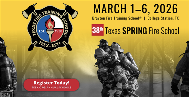 Registration is officially open for the 38th Annual TEEX Spring Fire School. Join them March 1–6, 2026, at Brayton Fire Training Field for hands-on Fire, Rescue, and EMS training. With 16 classes designed to challenge and strengthen your skills, you can train alongside students and instructors at the most advanced facilities in the world.
