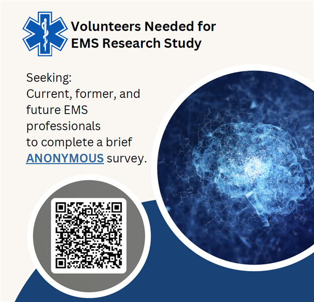 Dr. Nicole Hansen at Texas A&M University is conducting a research study that aims to better understand the educational, structural, and personal challenges experienced by EMS professionals. Participation involves completing an anonymous survey that collects general demographic information, educational background, and perceived barriers encountered during EMS education and career progression.