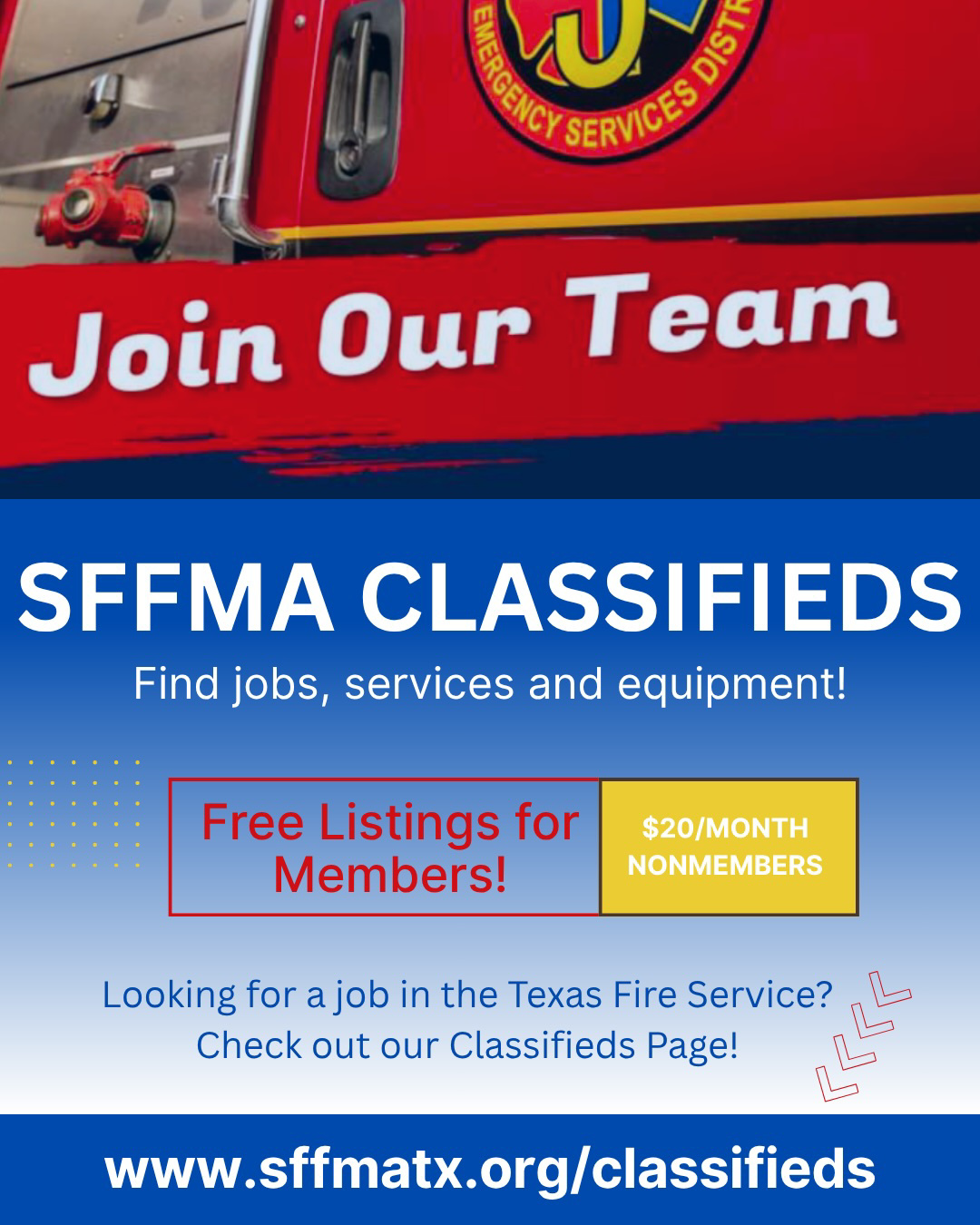 Need a job/appartus/service? Posting a job/appartus/service? Check out the SFFMA Classfieds! |