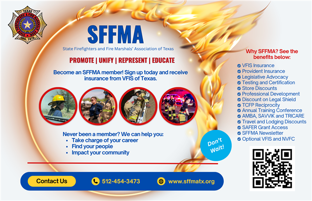 SFFMA Snapshot, where we share short bits of useful info. Look for this only twice a month, so we're not flooding your inbox! It's news you can use and is relevant to Texas firefighters. Enjoy!